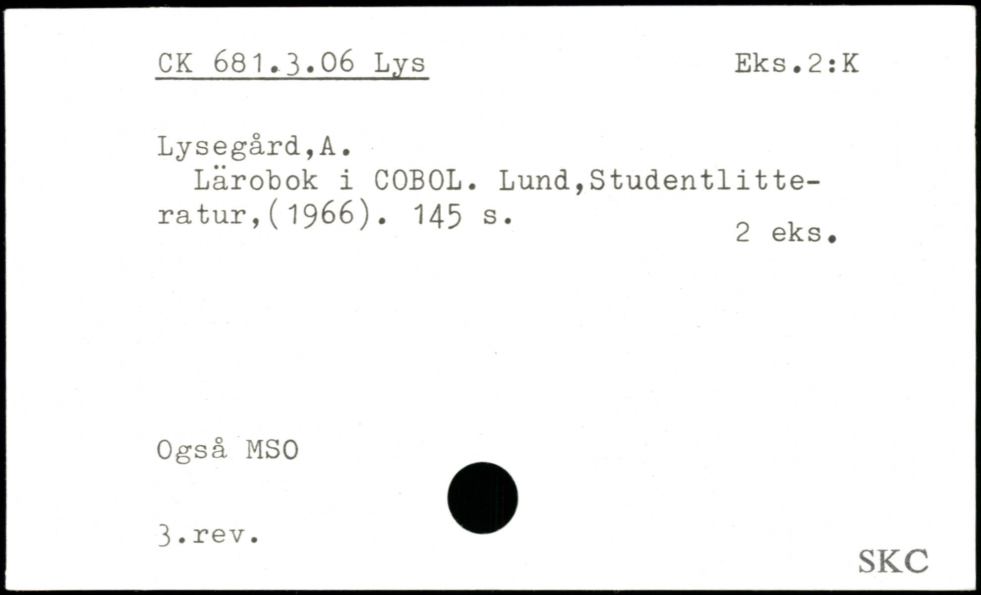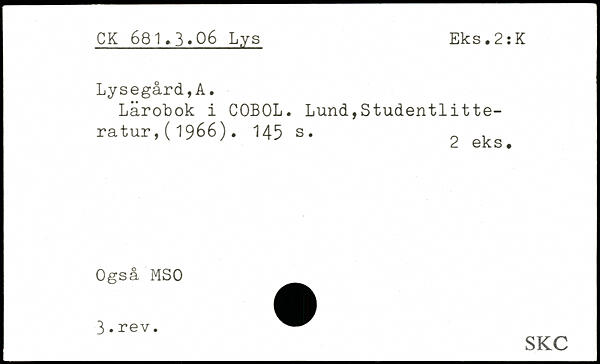 Lärobok i COBOL. Lund,Studentlitte- ratur,(1966).