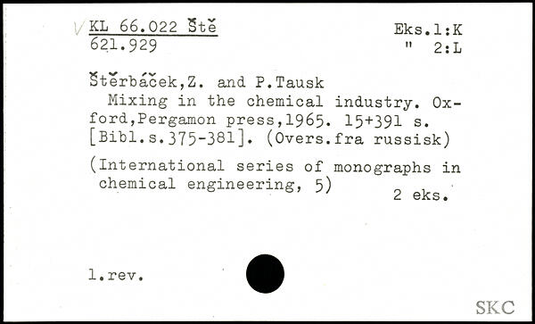 3terbacek,Z. and P.Tausk Mixing in the chemical industry.