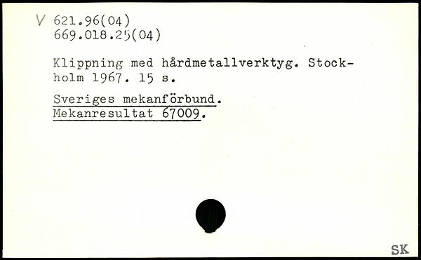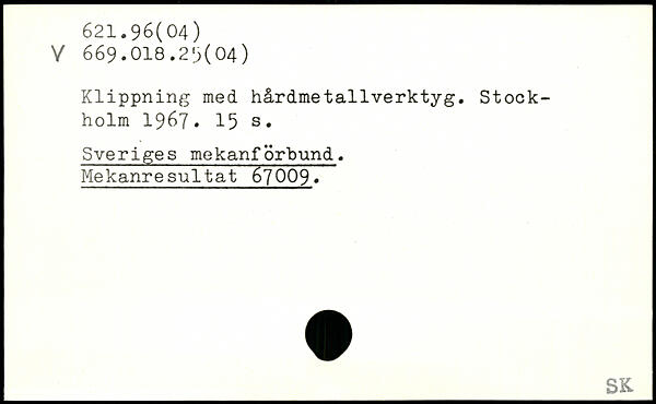 Klippning med hårdmetallverktyg.