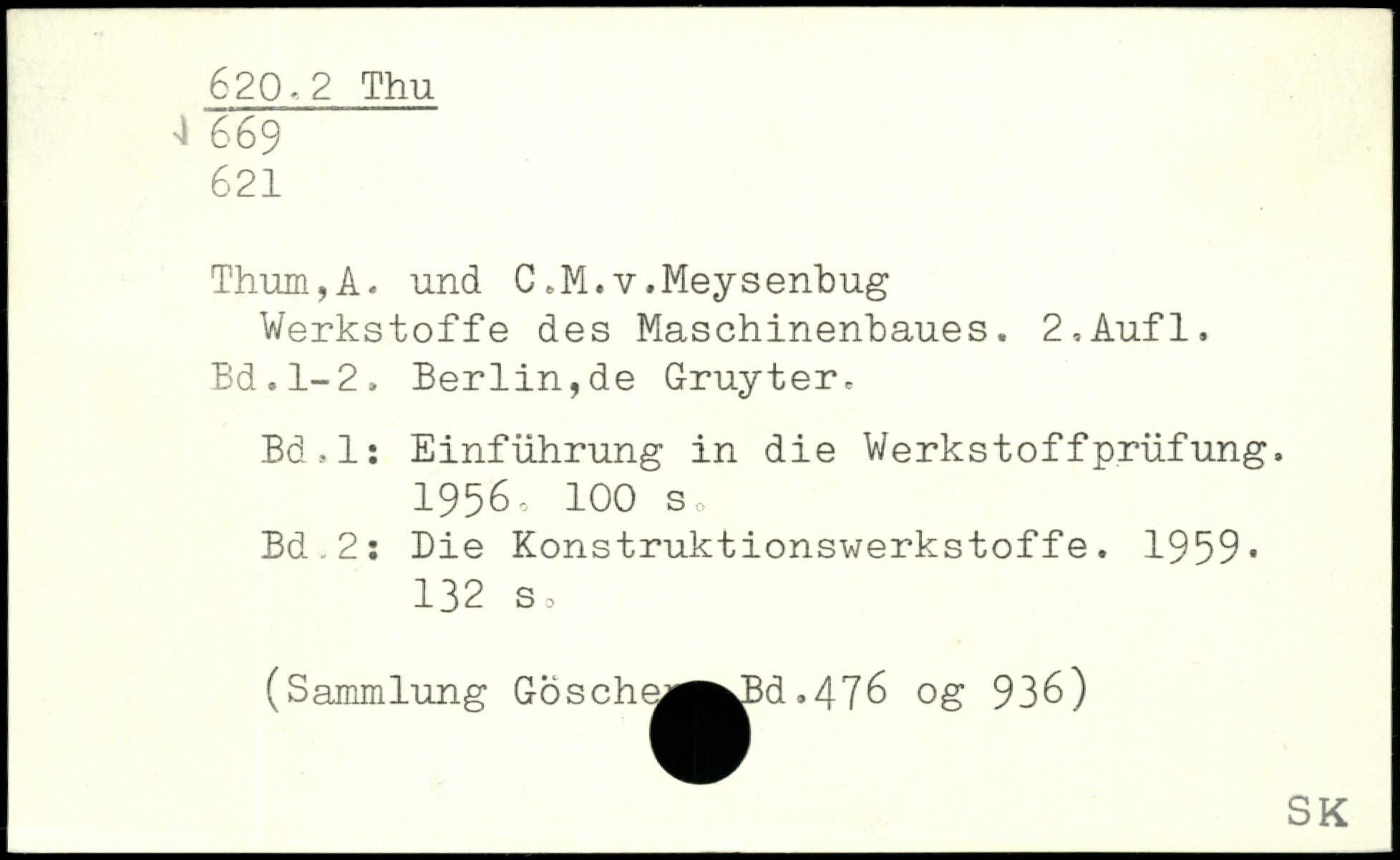 Thum,A. und C,M.v.Meysenbug Werkstoffe des Maschinenbaues. 2,Aufl.