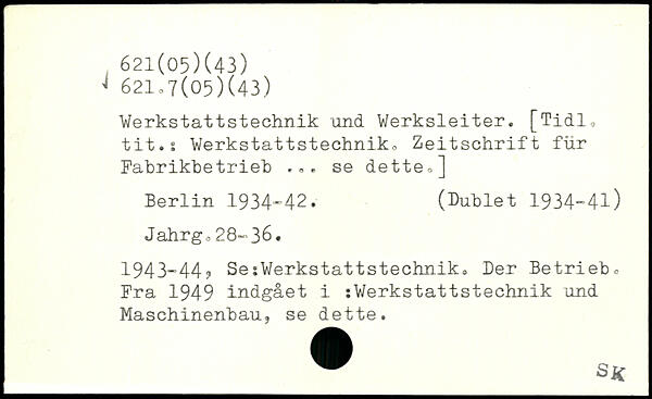 Werkstattstechnik und Werksleiter. [Tidl, tit.s Werkstattstechnik. Zeitschrift für Fabrikbetrieb .,, se detteo]