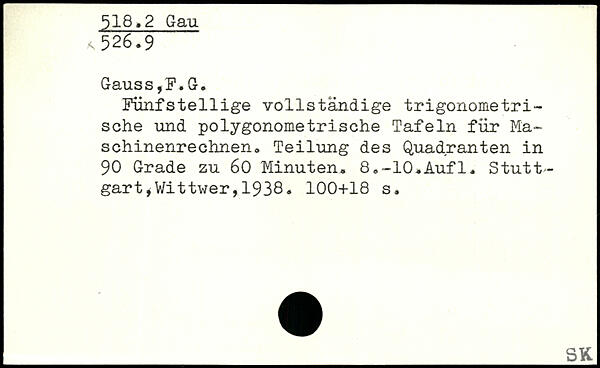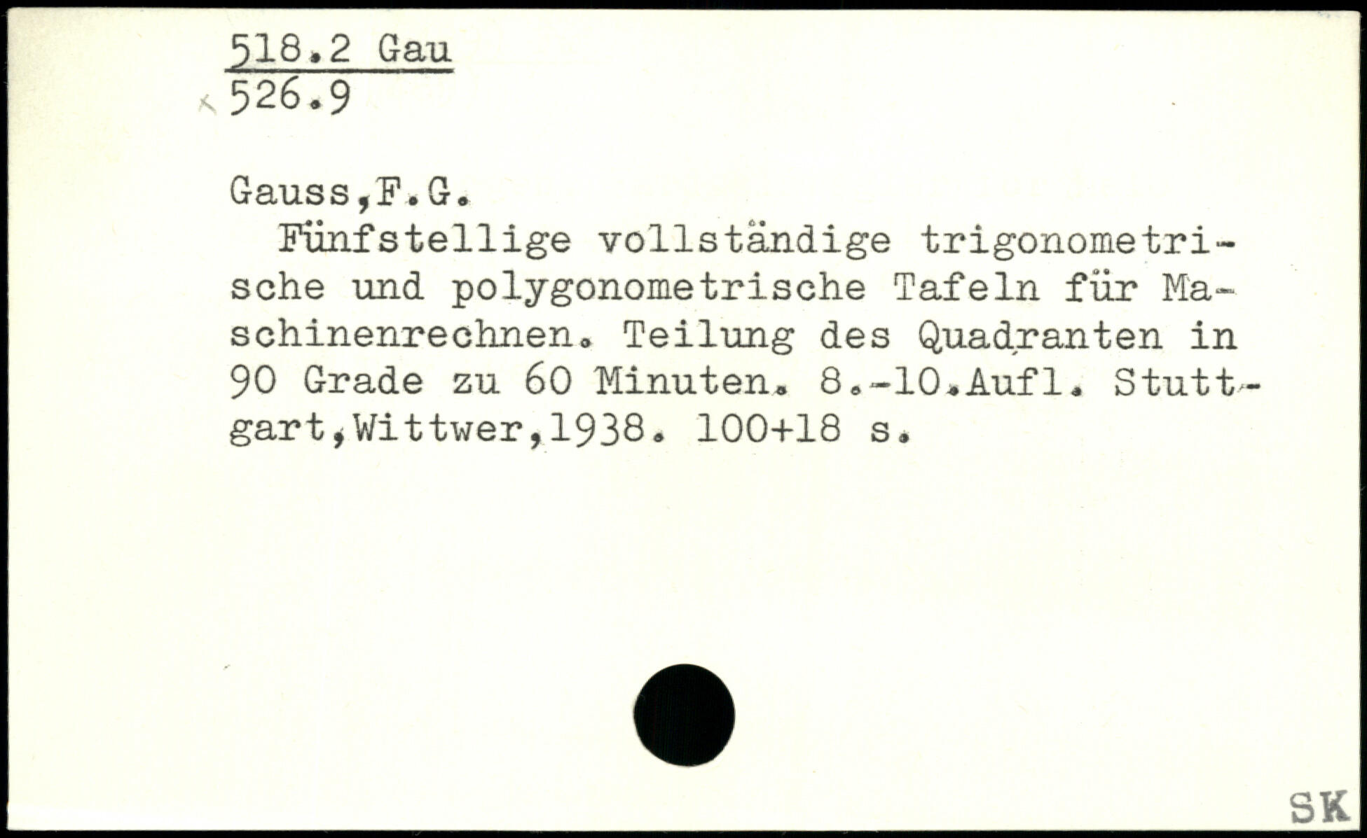 Fünfstellige vollständige trigonometrische und polygonometrische Tafeln für Maschinenrechnen. Teilung des Quadranten in 90 Grade zu 60 Minuten. 8.-