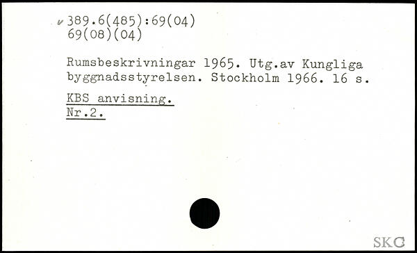 Rumsbeskrivningar 1965- Utg.av Kungliga byggnadsstyrelsen.