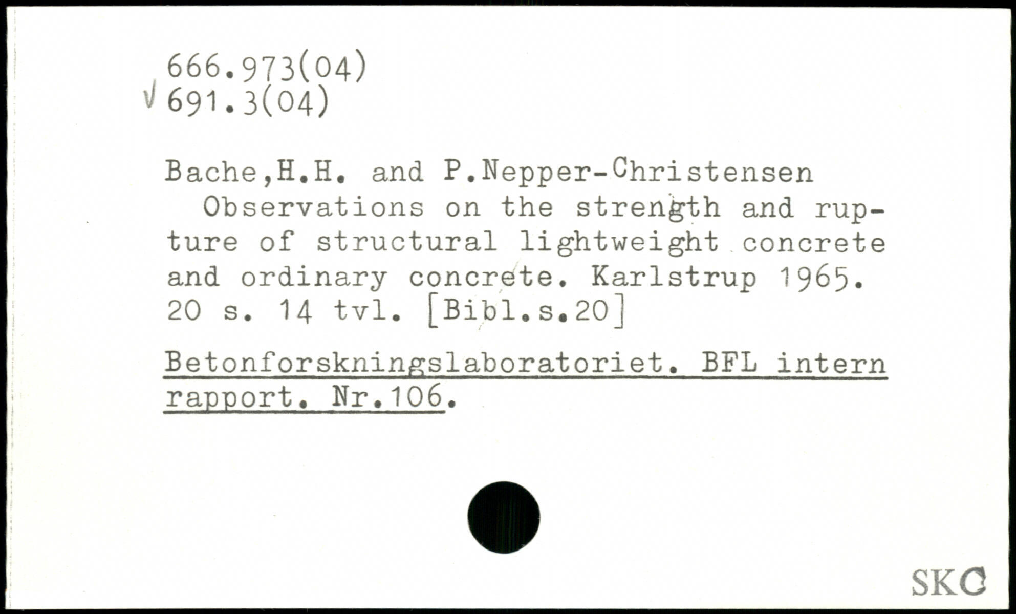Bache,H.H. and P.Nepper-Christensen Observations on the strength and rupture of structural lightweight concrete and ordinary concrete. Karlstrup 19^5-