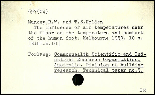 Muncey,RnW, and ToS.Holden The influence of air temperatures near the floor on the temperature and comfort of the human foot. Melbourne 1959.