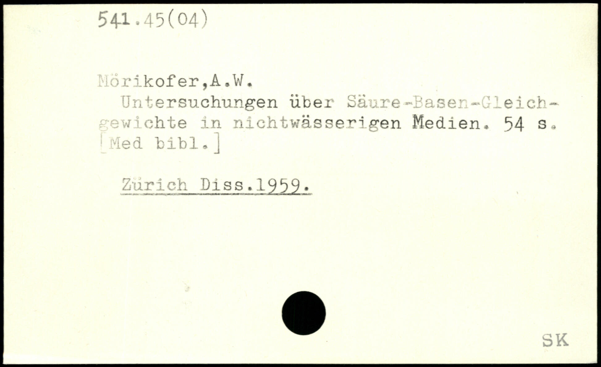 Untersuchungen über Säure-Basen-Gleich-gewichte in nichtwässerigen Medien
