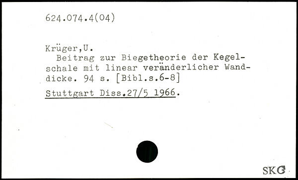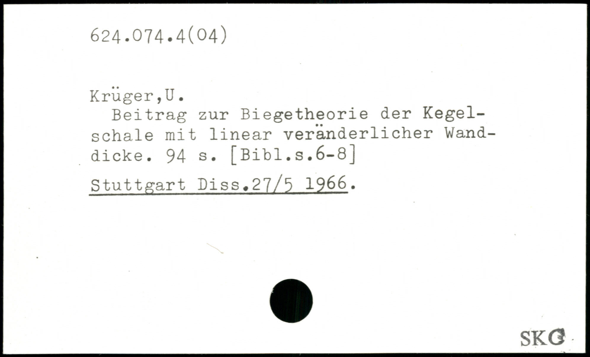 Beitrag zur Biegetheorie der Kegelschale mit linear veränderlicher Wanddicke.