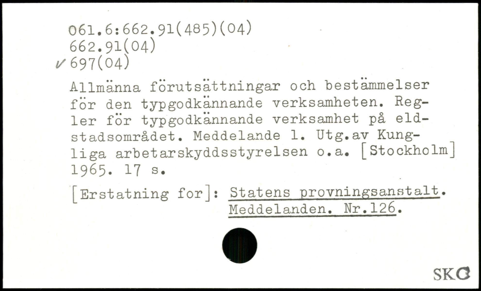 Allmänna förutsättningar och bestämmelser för den typgodkännande verksamheten. Regler för typgodkännande verksamhet på eldst adsområdet. Meddelande 1. Utg.av Kungliga arbetarskyddsstyrelsen o.a.
