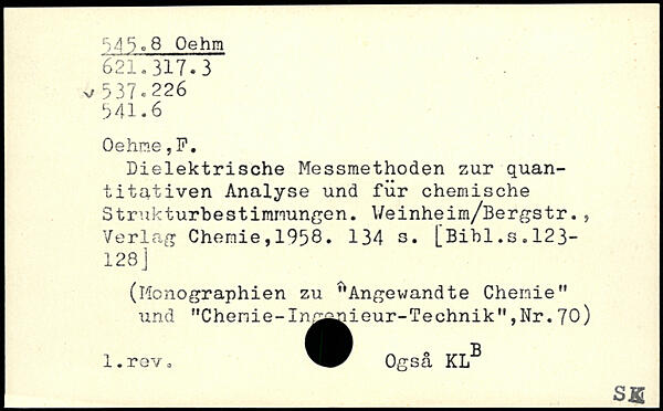 UDK: 545.8 Oehm, 621.317.3, 537.226, 541.6