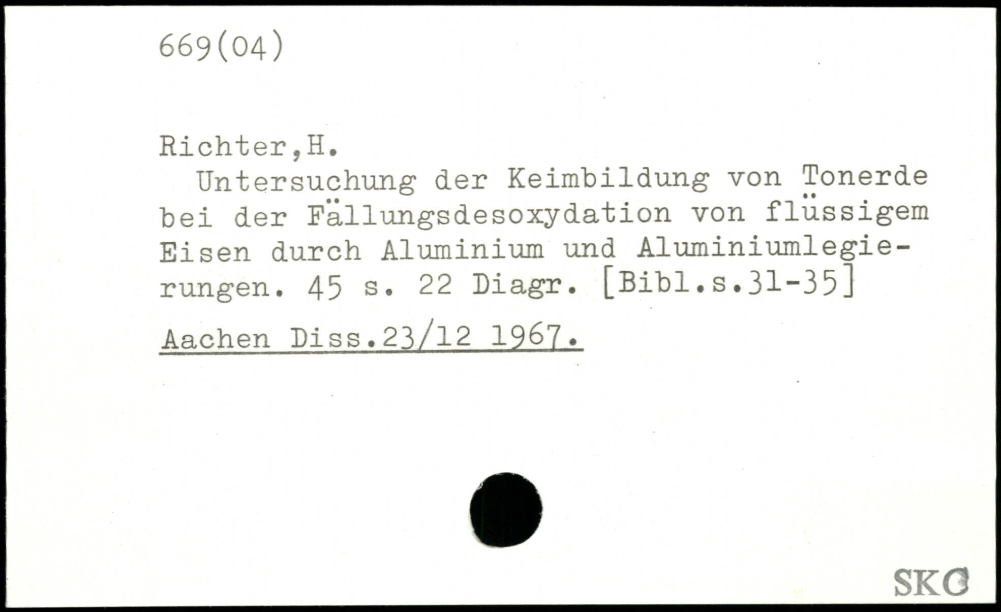 Untersuchung der Keimbildung von Tonerde bei der Fällungsdesoxydation von flüssigem Eisen durch Aluminium und Aluminiumlegierungen.