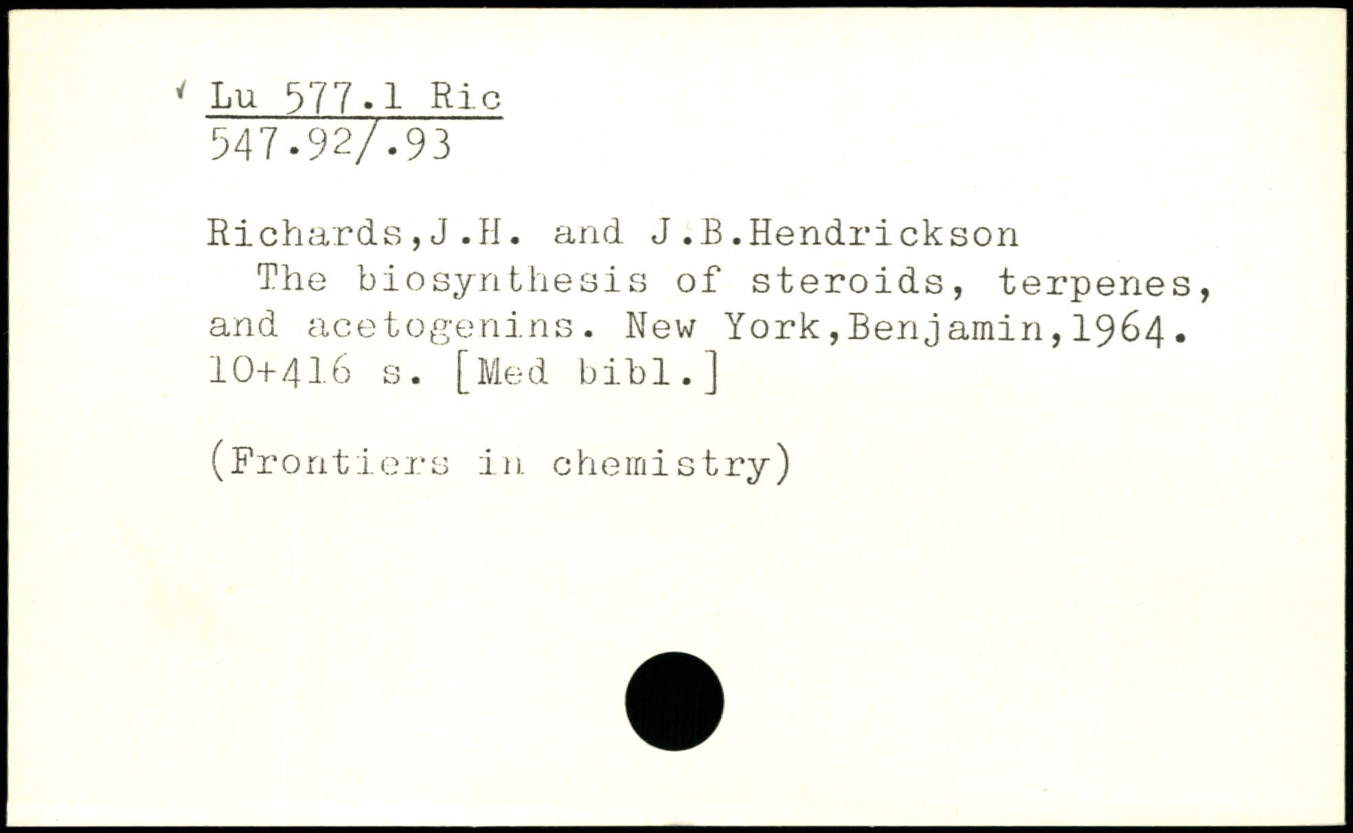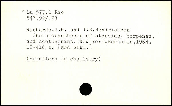 Richards , J .II. and J.B.Hendrickson The biosynthesis of steroids, terpenes, and acetogenins.