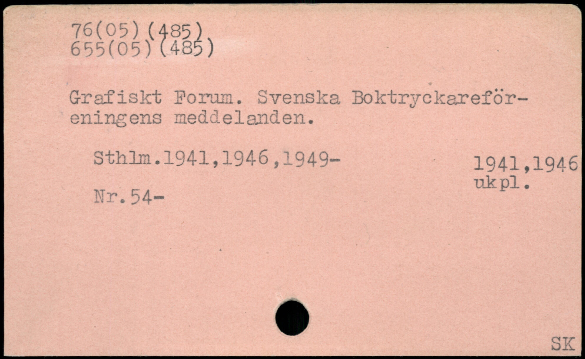Grafiskt Forum. Svenska Bo ktryc kar ef öreningens meddelanden. SthM.1941,1946,1949- 1941,1946 ukpl. Nr.54-