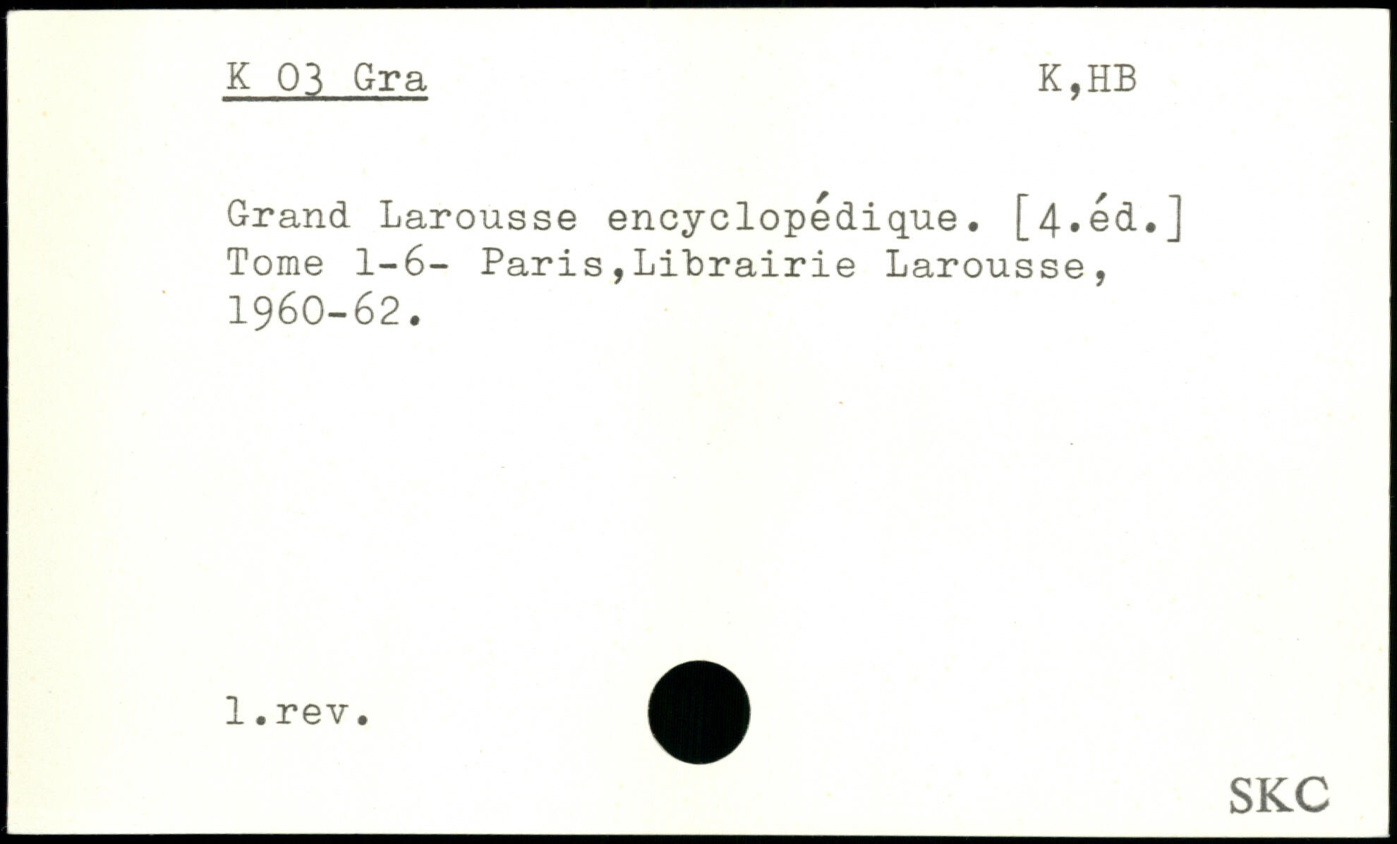Grand Larousse encyclopédique. [4,éd.] Tome 1-6- Paris,Librairie Larousse, 19éO-62.