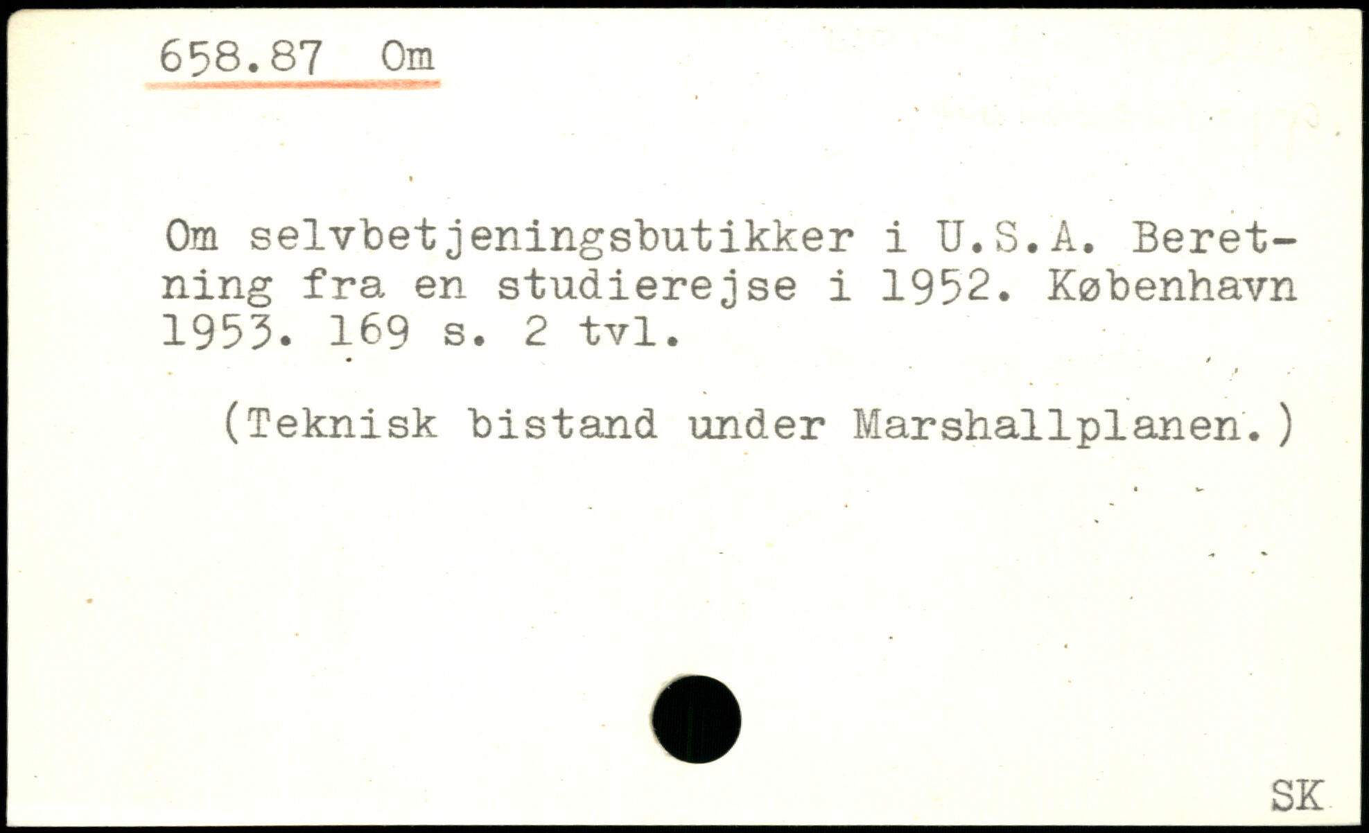 Om selvbetjeningsbutikker i U.S.Å. Beretning fra en studierejse i 1952.