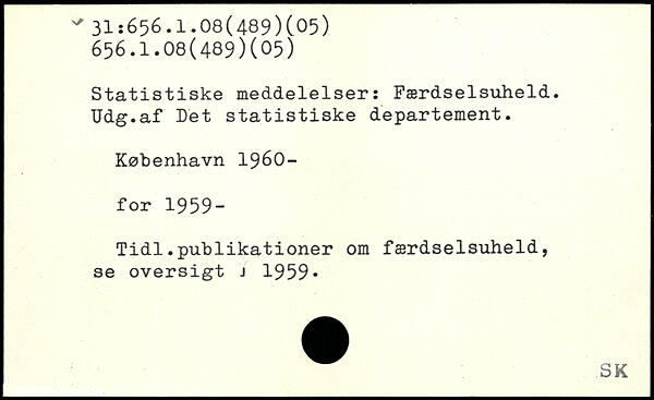 Statistiske meddelelser: Færdselsuheld. Udg.af Det statistiske departement.