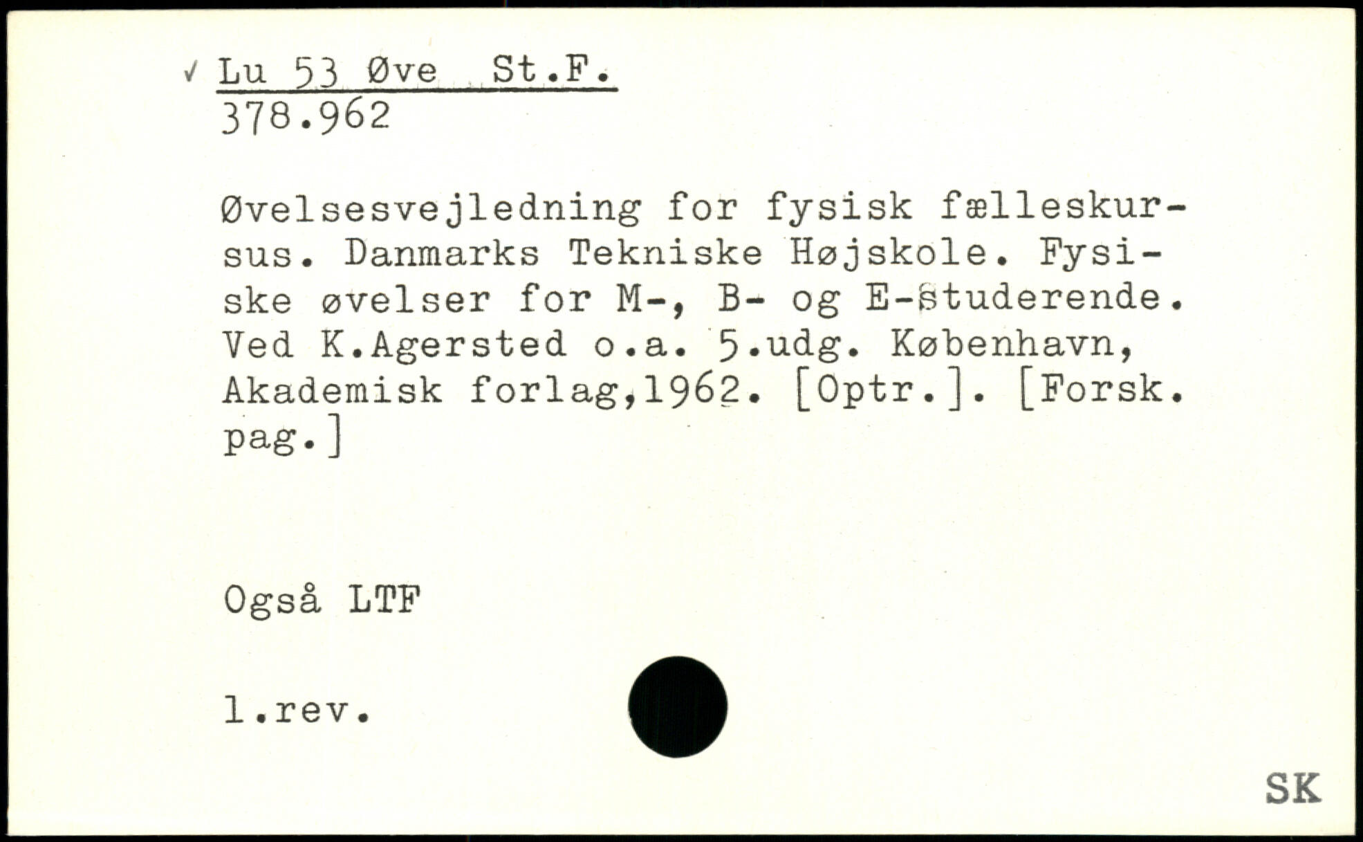 Øvelsesvejledning for fysisk fælleskursus. Danmarks Tekniske Højskole. Fysiske øvelser for M-, B- og E-fetuderende. Ved K.Agersted o.a. 5,udg.