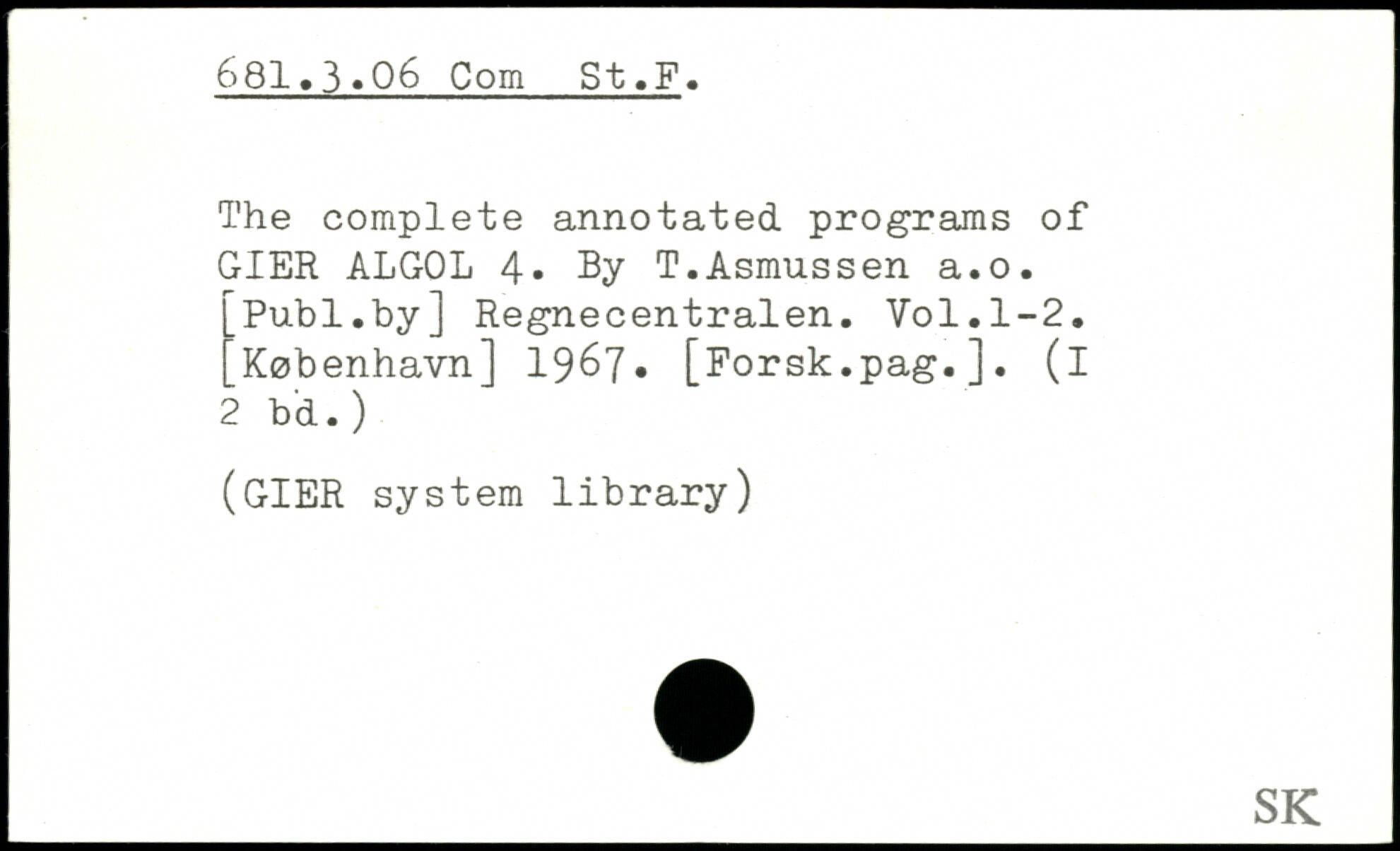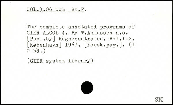 The complete annotated programs of GIER ALGOL 4. By T.Asmussen a.o.