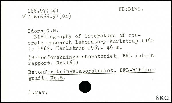 Bibliography of literature of concrete research laboratory Karlstrup 1960 to 1967. Karlstrup 1967