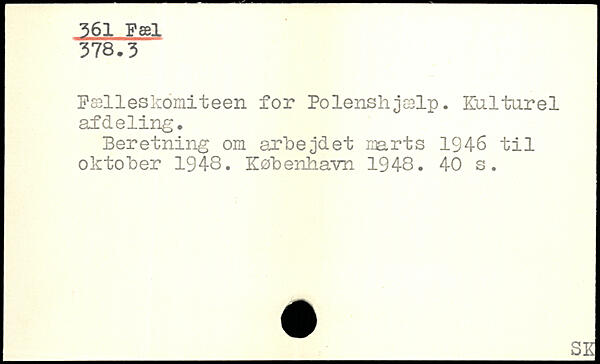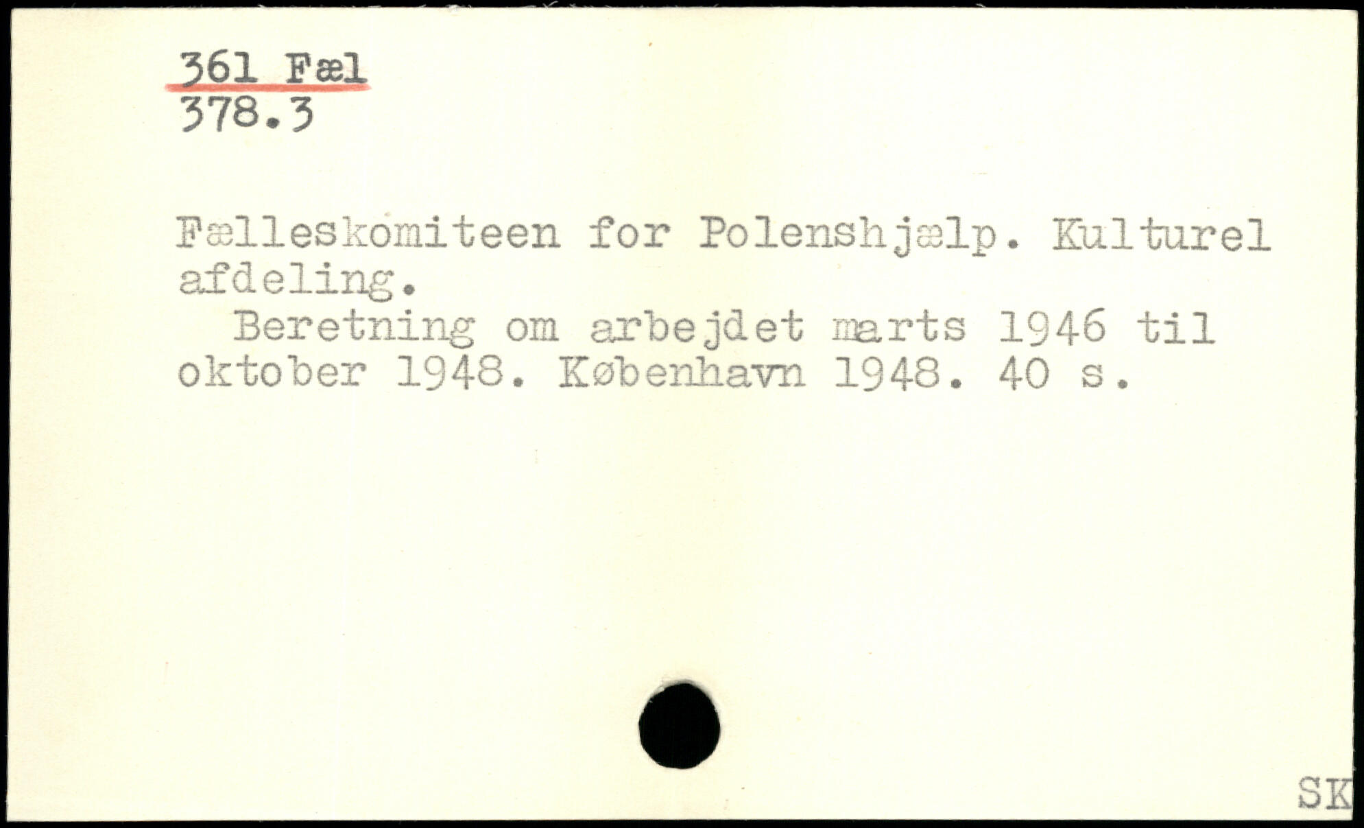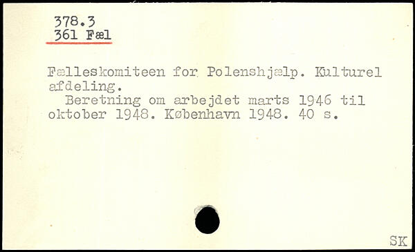 Fælleskomiteen for Polenshjælp. Kulturel afdeling. Beretning om arbejdet marts 1946 til oktober 1948.