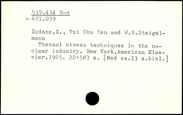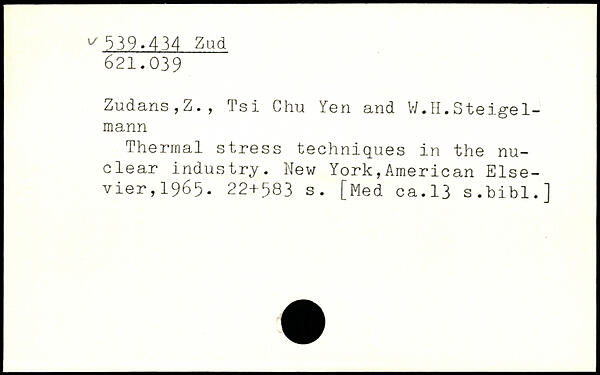 Zudans, Z. , Tsi Chu Yen and W.H.Steige1-mann Thermal stress techniques in the nuclear industry.