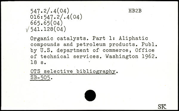 Organic catalysts. Part 1: Aliphatic compounds and petroleum products.