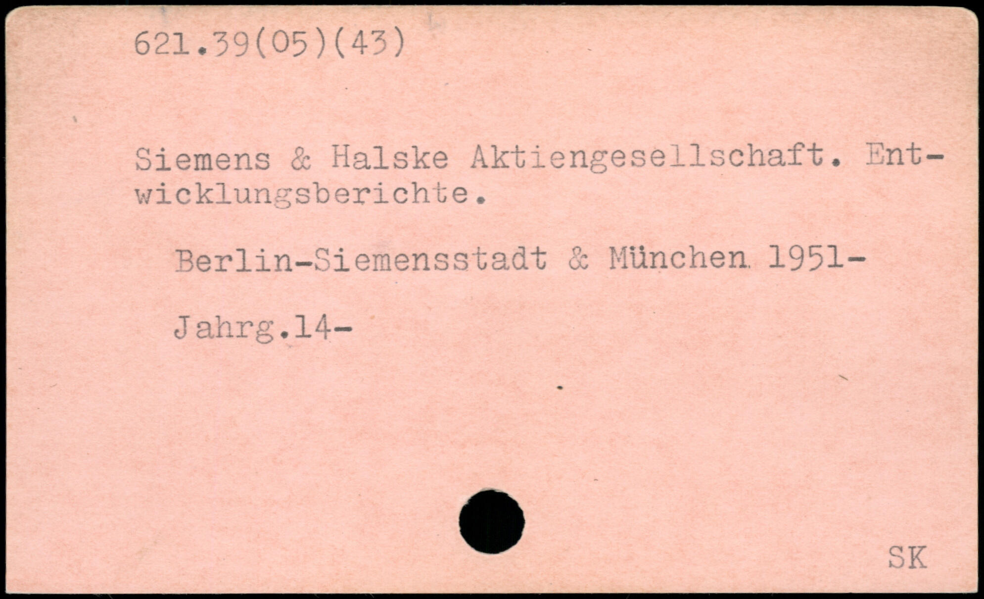 Siemens & Halske Aktiengesellschaft. Entwicklungsberichte. Berlin-Siemensstadt & München. 1951- Jahrg.14-