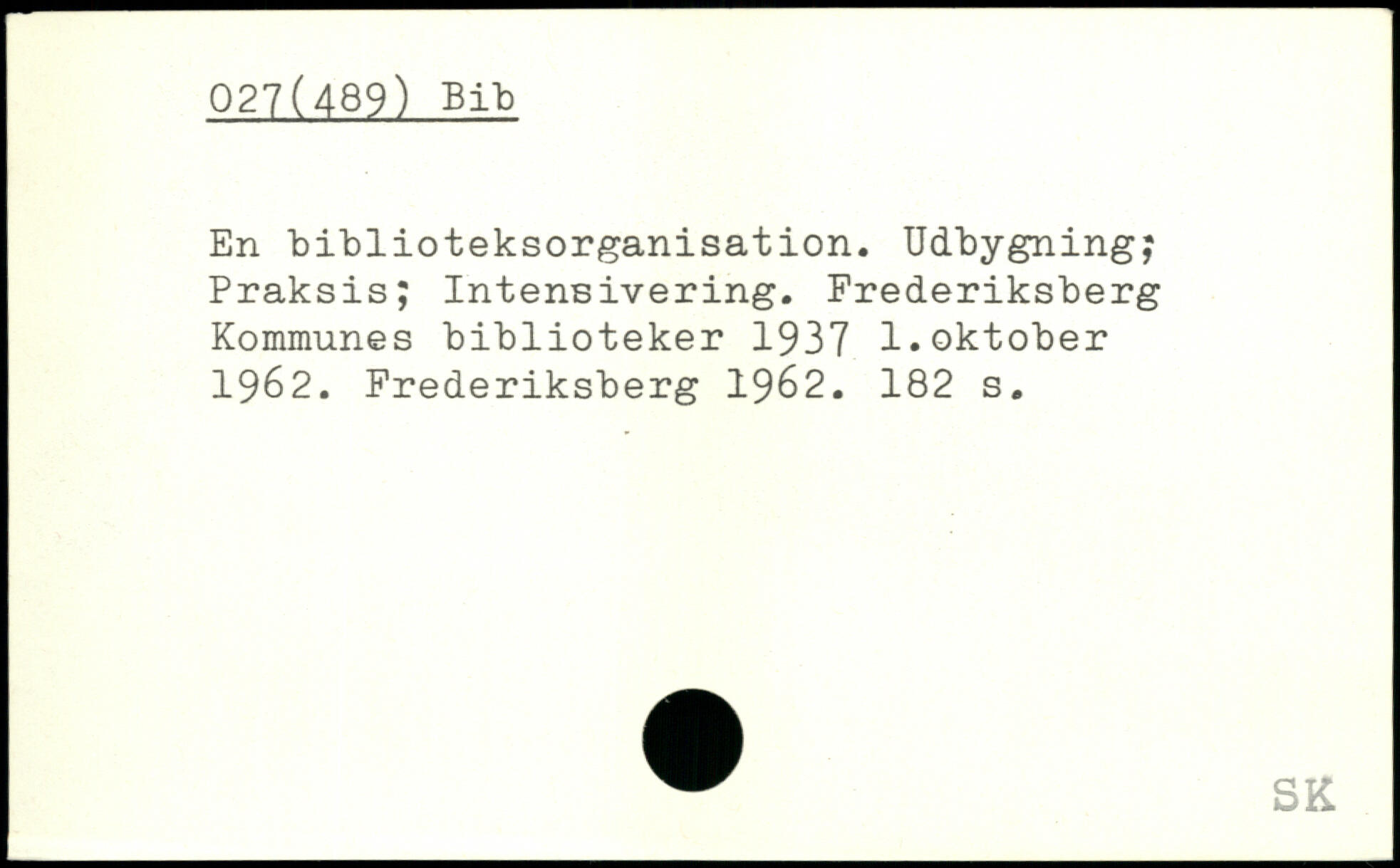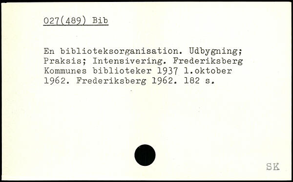 En biblioteksorganisation. Udbygning; Praksis; Intensivering. Frederiksberg Kommunes biblioteker 1937 1.oktober 1962. Frederiksberg 1962.