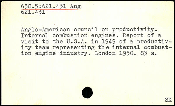 Anglo-American council on productivity. Internal combustion engines. Report of a visit to the U.S.A. in 1949 of a productivity team representing the internal combustion engine industry.