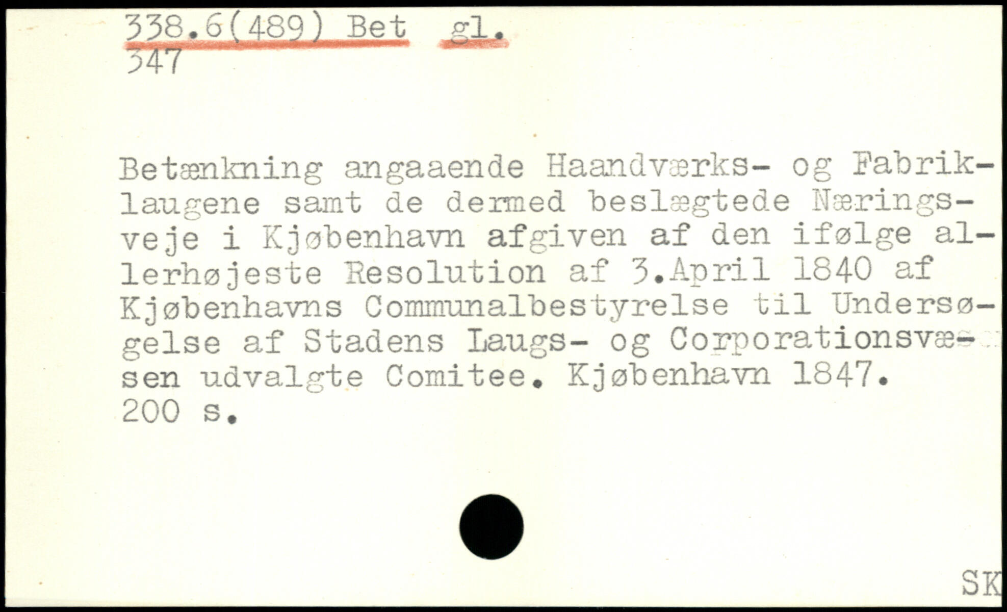 Betænkning angaaende Haandværks- og Babrik-laugene sarat de dermed beslægtede Næringsveje i Kjøbenhavn afgiven af den ifølge allerhøjeste Besolution af 3.April 1840 af Kjøbenhavns Gomirmnalbestyrelse til Undersøgelse af Stadens Laugs- og Corporationsvæsen udvalgte Coraitee. Kjøbenhavn 1847.
