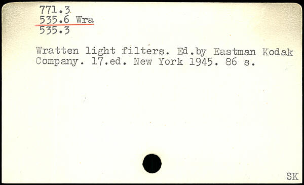 Wratten light filters. Ed.by Eastman Kodak Company.