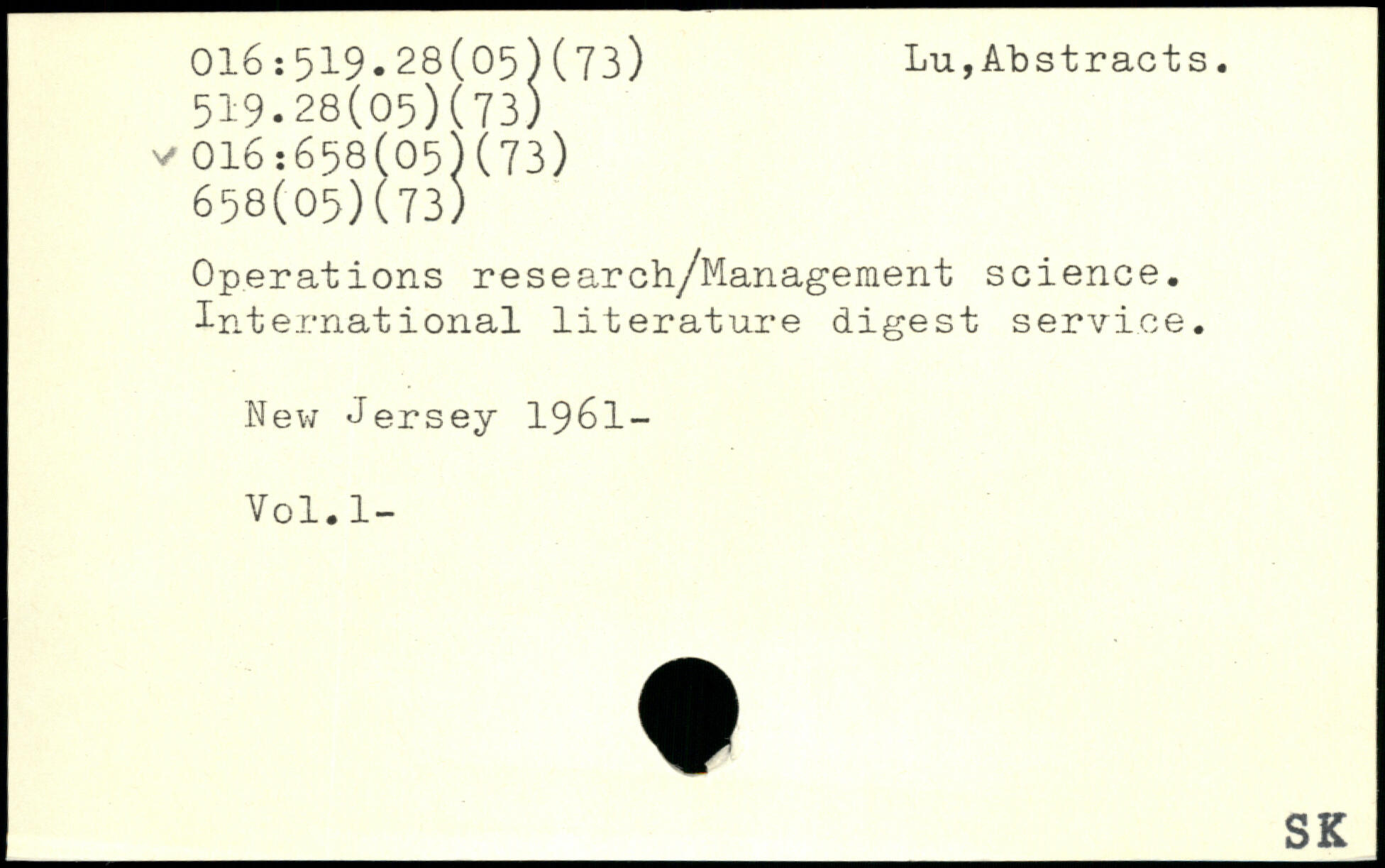 Operations research/Management science, international literature digest service. New Jersey 1961- Vol.l-