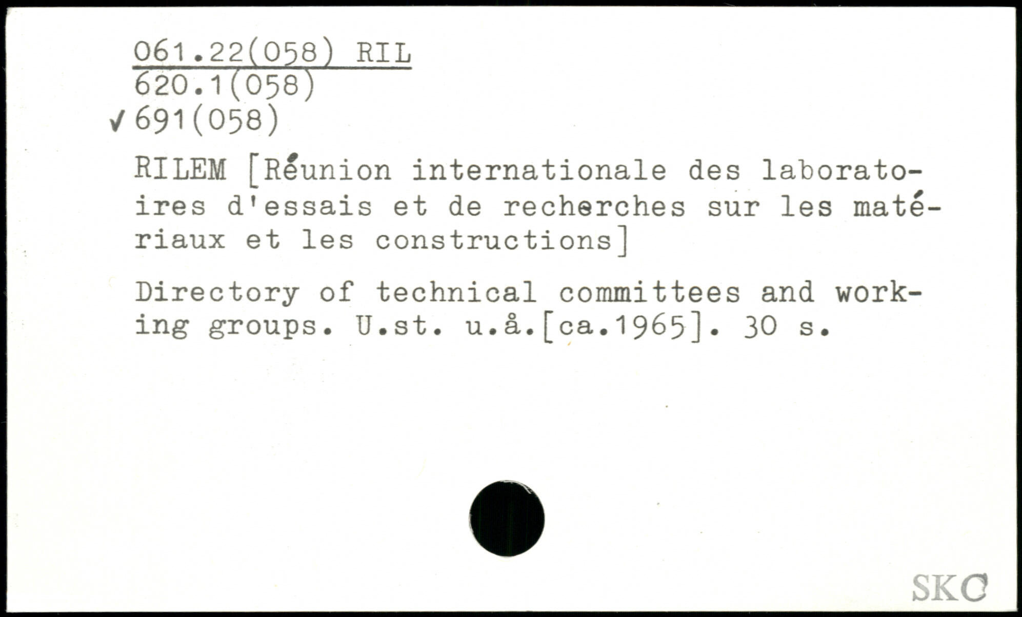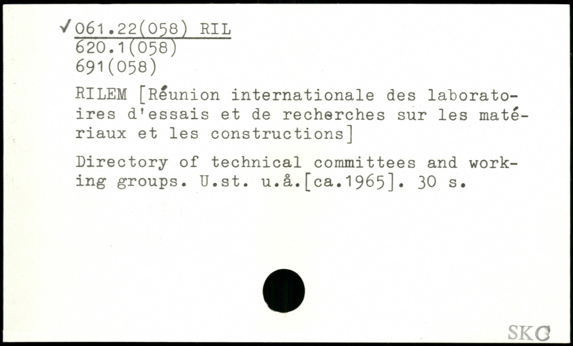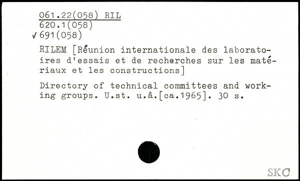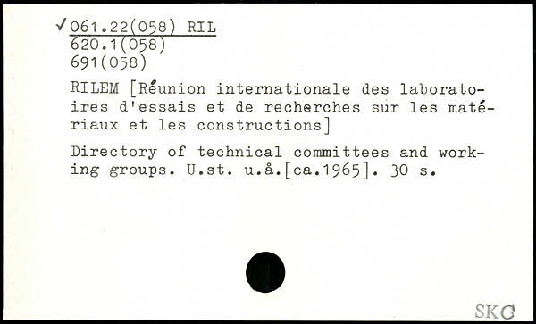 RILEM [Reunion internationale des laboratoires d’essais et de recherches sur les matériaux et les constructions] Directory of technical committees and working groups. U.st. u.a.[ca.1965].