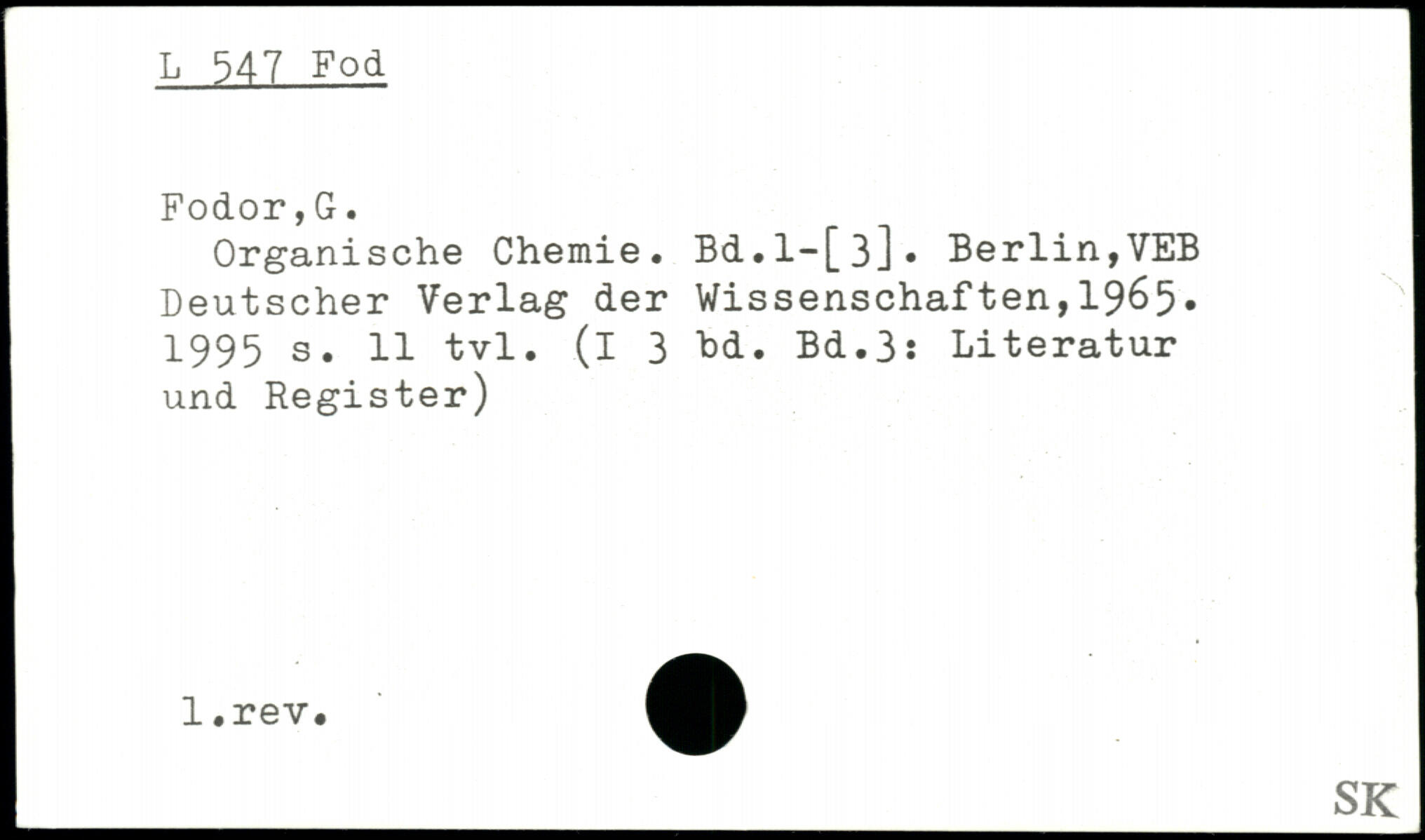 Organische Chemie. Bd.l-[3]. Berlin,VEB i Deutscher Verlag der Wissenschaften,1965