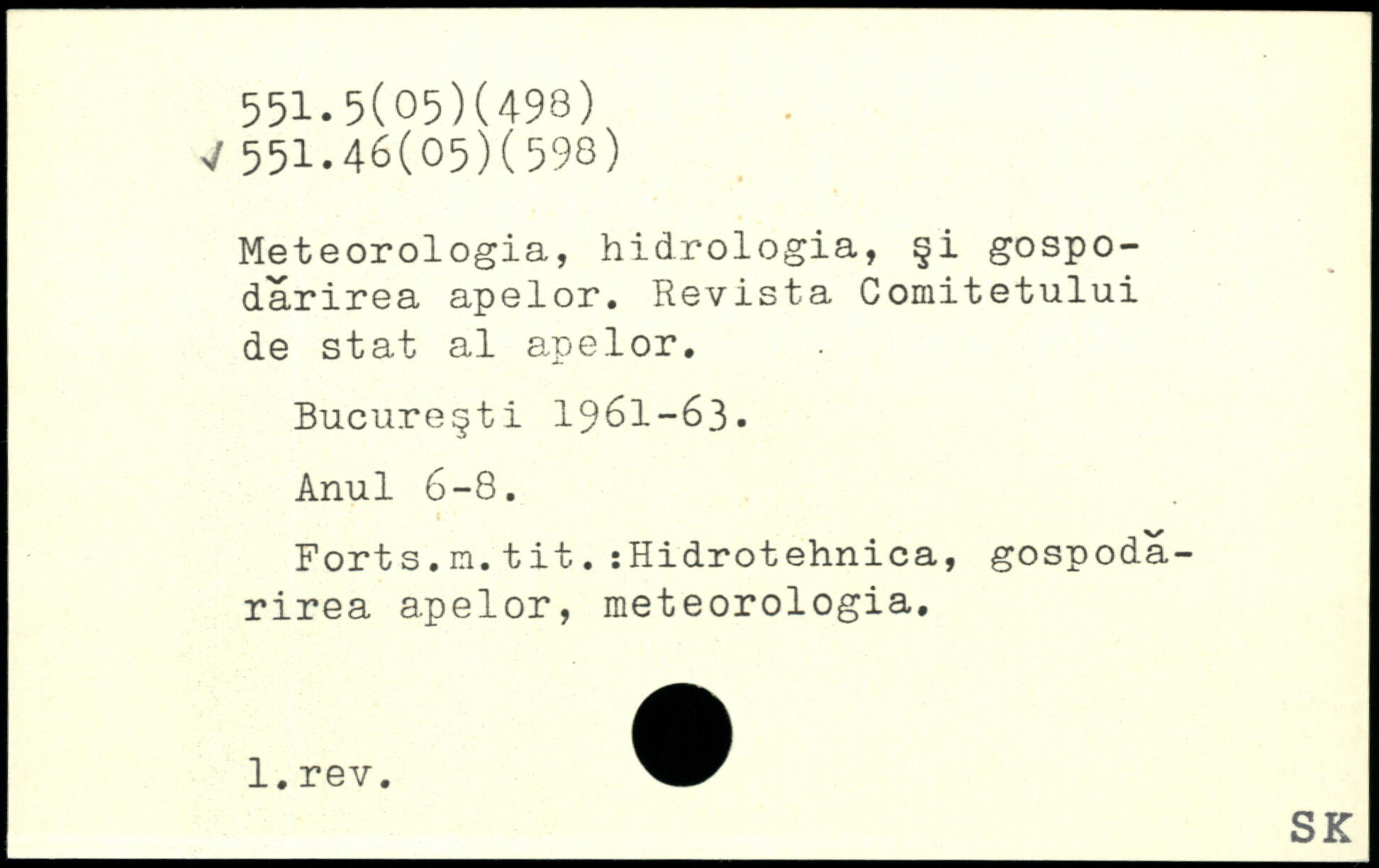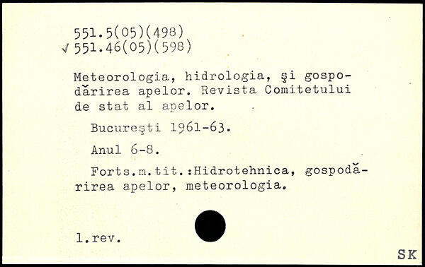 Meteorologia, hidrologia, §i gospo-darirea apelor. Revista Comitetului de stat al apelor. Bucure§ti 1961-63. Anul 6-8. Forts.m.tit.:Hidrotehnica, gospoda-rirea apelor, meteorologia.