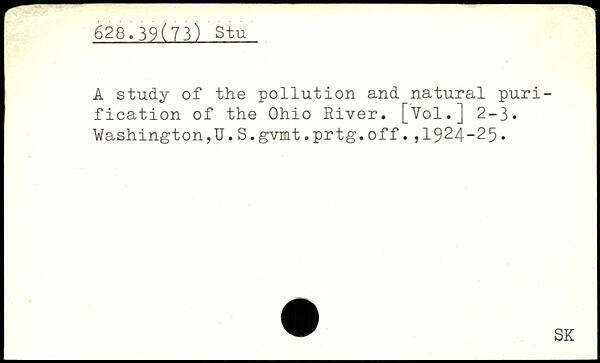 A study of the pollution and natural purification of the Ohio River.