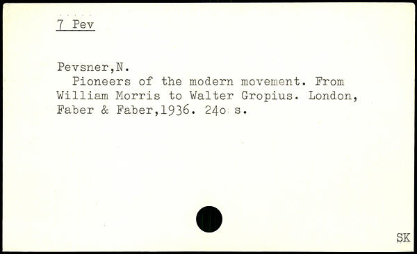Pioneers of the modern movement. From W1111am Morris to Walter Gropius.