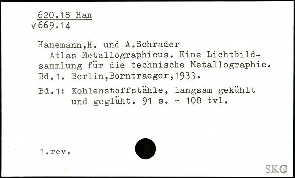Atlas Metallographicus. Eine Lichtbild-sammlung für die technische Metallographie.