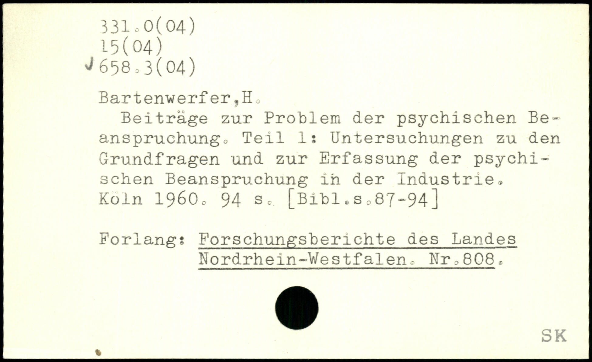 Beiträge zur Problem der psychischen Be-anspruchungo Teil 1: Untersuchungen zu den Grundfragen und zur Erfassung der psychischen Beanspruchung in der Industrie