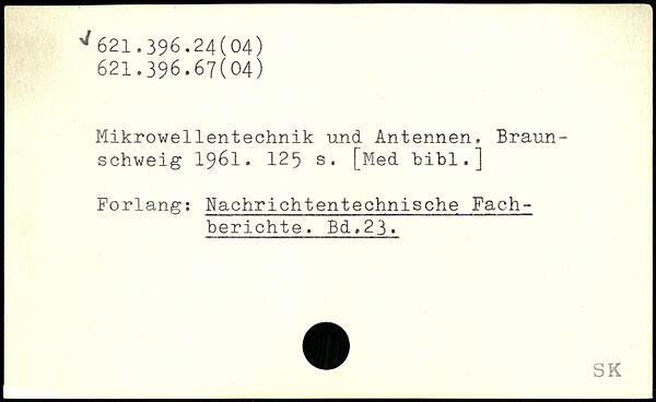 Mikrowellentechnik und Antennen, Braunschweig 1961.