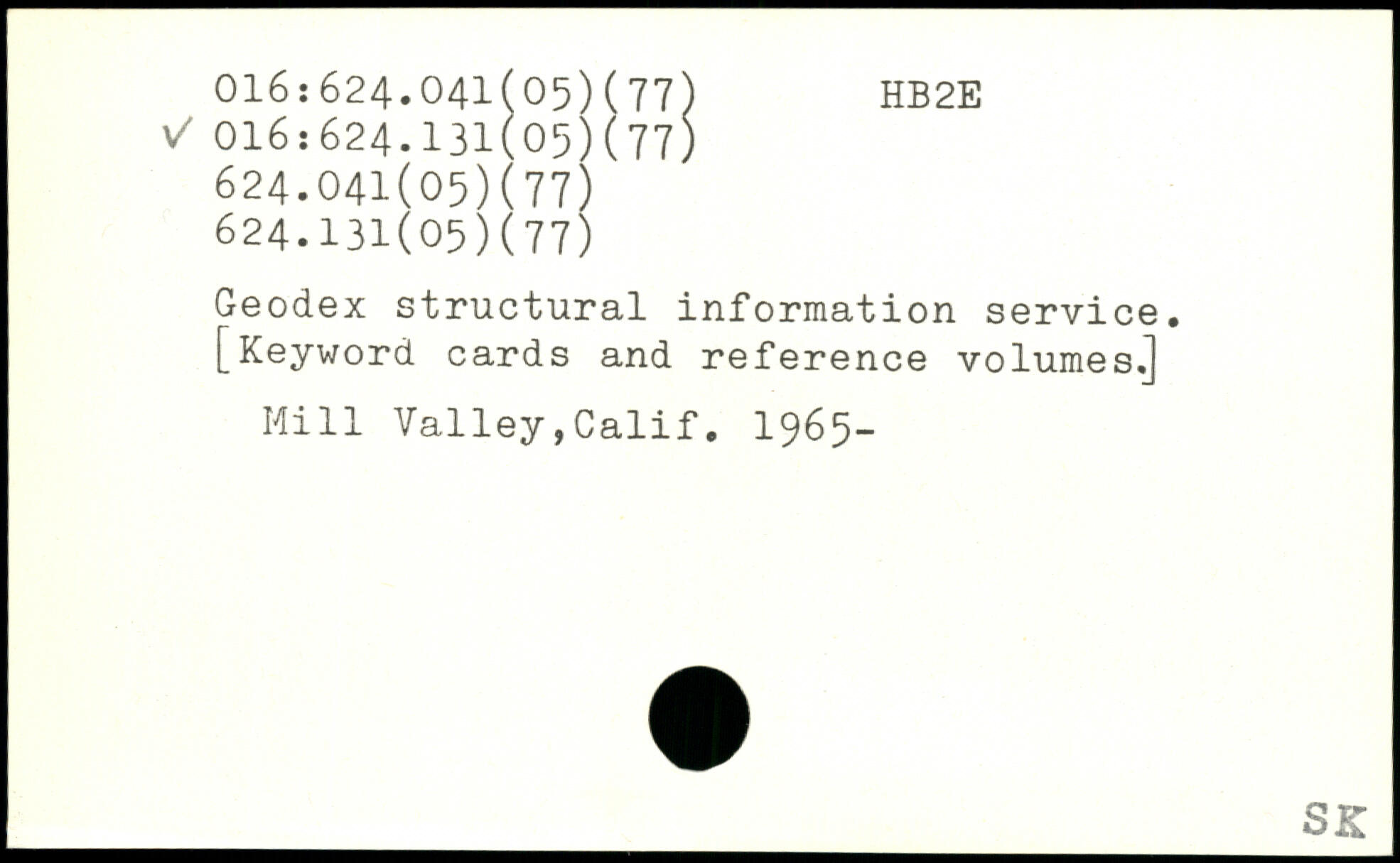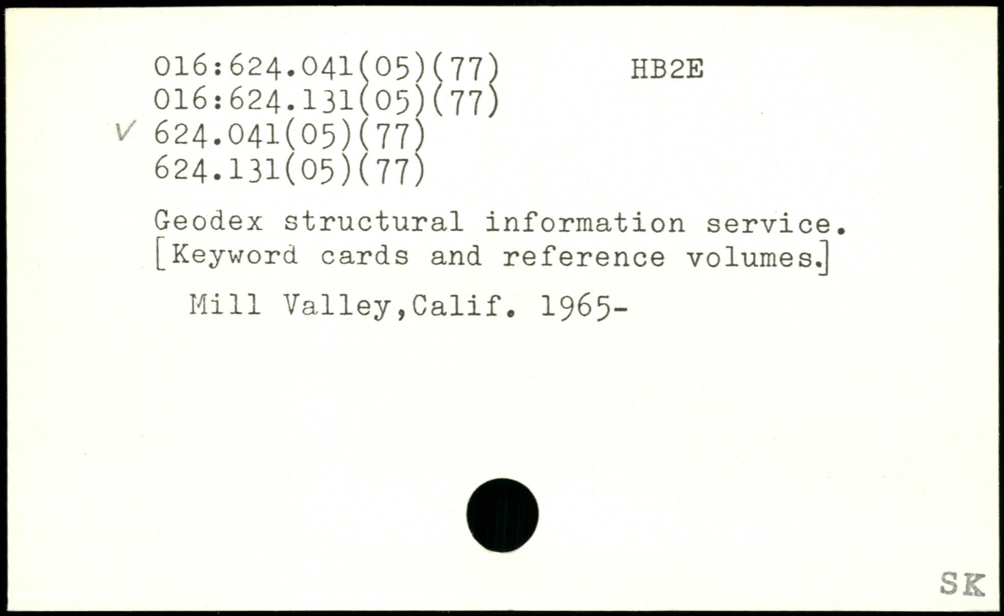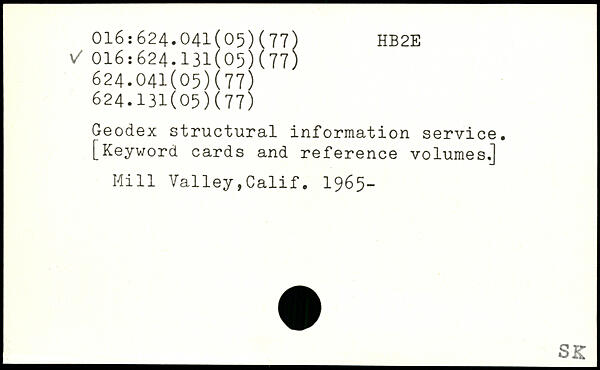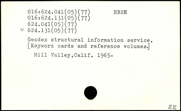 Geodex structural information service. [Keyword cards and reference volumes.] Mill Valley,Calif. 1965-