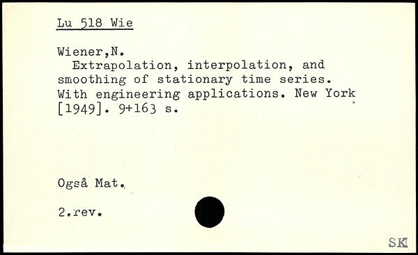 Extrapolation, interpolation, and smoothing of stationary time series. With engineering applications.