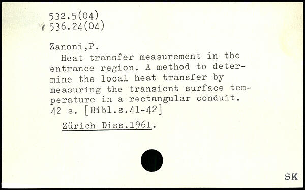 Heat transfer measurement in the entrance region. A method to determine the local heat transfer by measuring the transient surface temperature in a rectangular conduit.