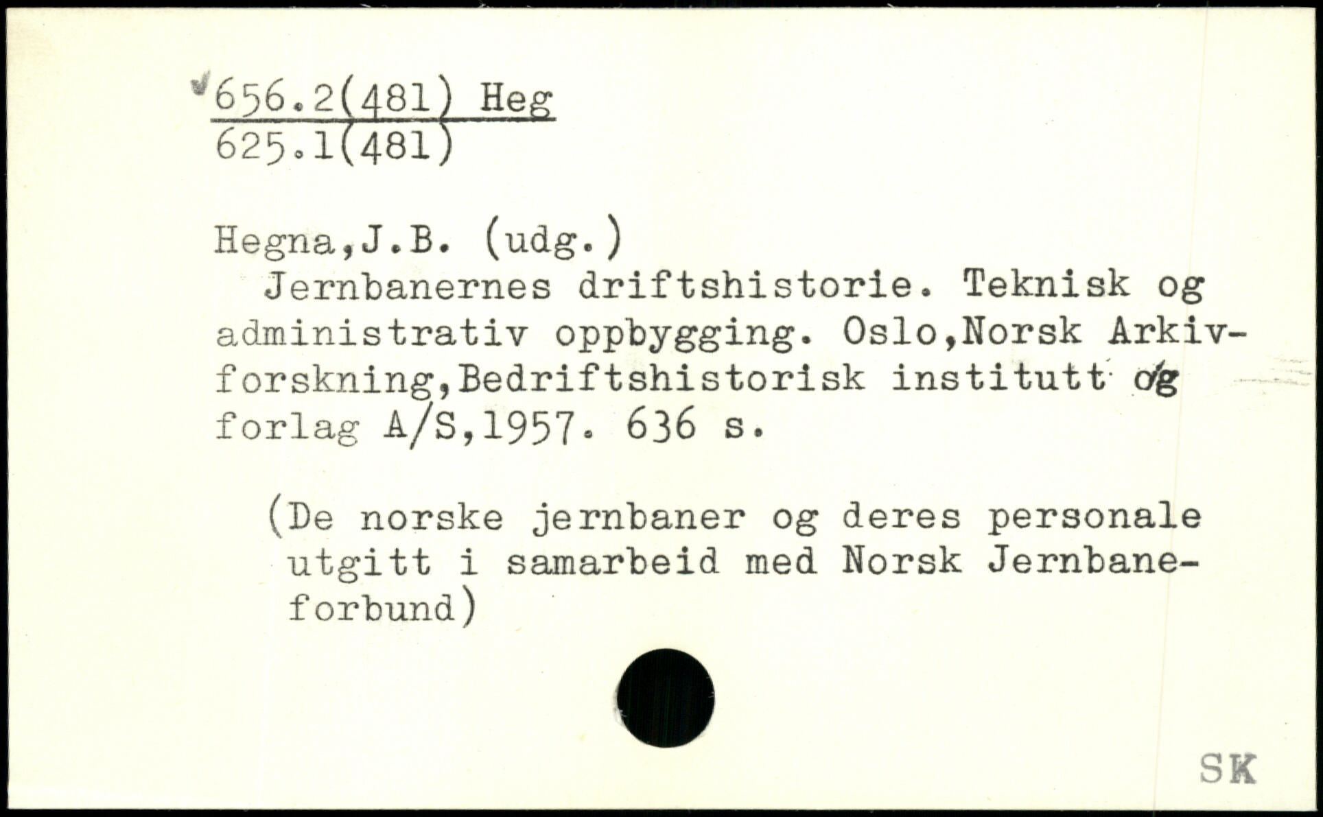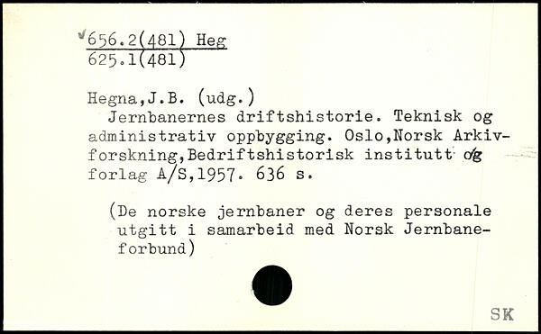 Jernbanernes driftshistorie. Teknisk og administrativ oppbygging. Oslo,Norsk Arkiv-forskning,Bedriftshistorisk institutt &g forlag A/s,1957.