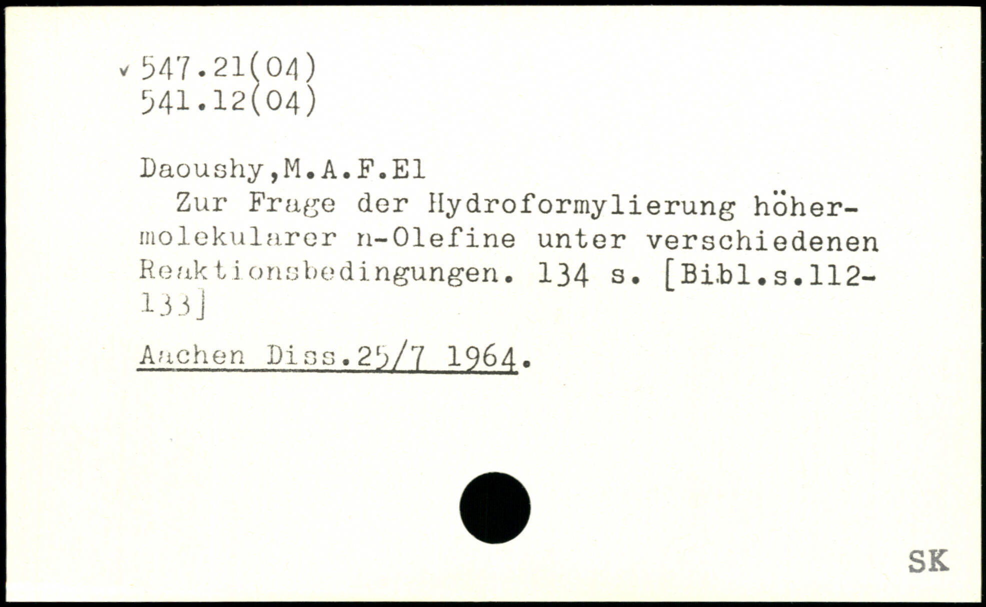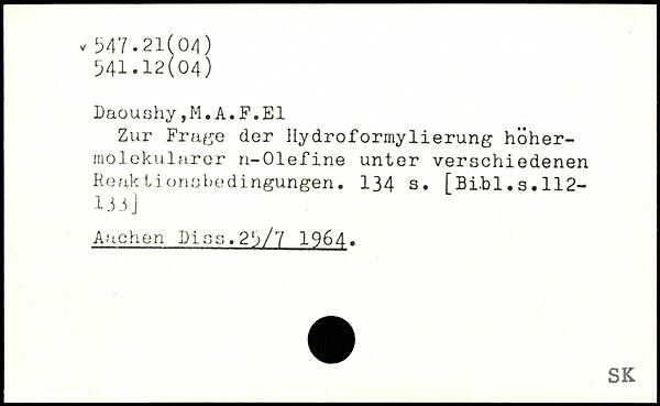 Zur Frage der Hydroformylierung höhermolekularer n-Olefine unter verschiedenen Reakt I orisbedingungen.