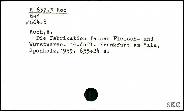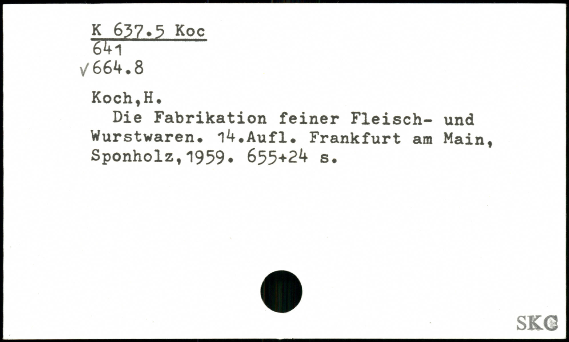 Die Fabrikation feiner Fleisch- und Wurstwaren. I^.Aufl.