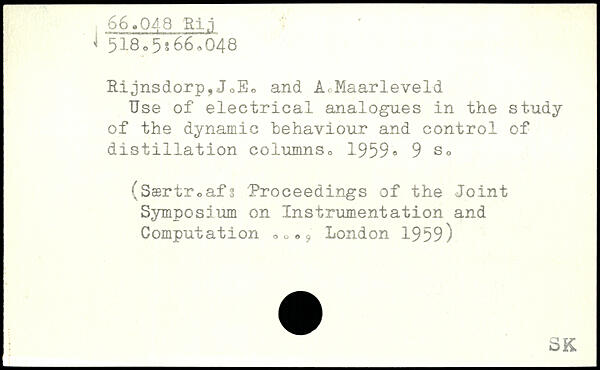 Rijnsdorp,J0E0 and A.-Maarleveld Use of electrical analogues in the study of the dynamic behaviour and control of distillation columns, 1959®