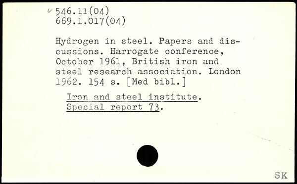 Hydrogen in steel. Papers and discussions. Harrogate conference, October 1961, British iron and steel research association.