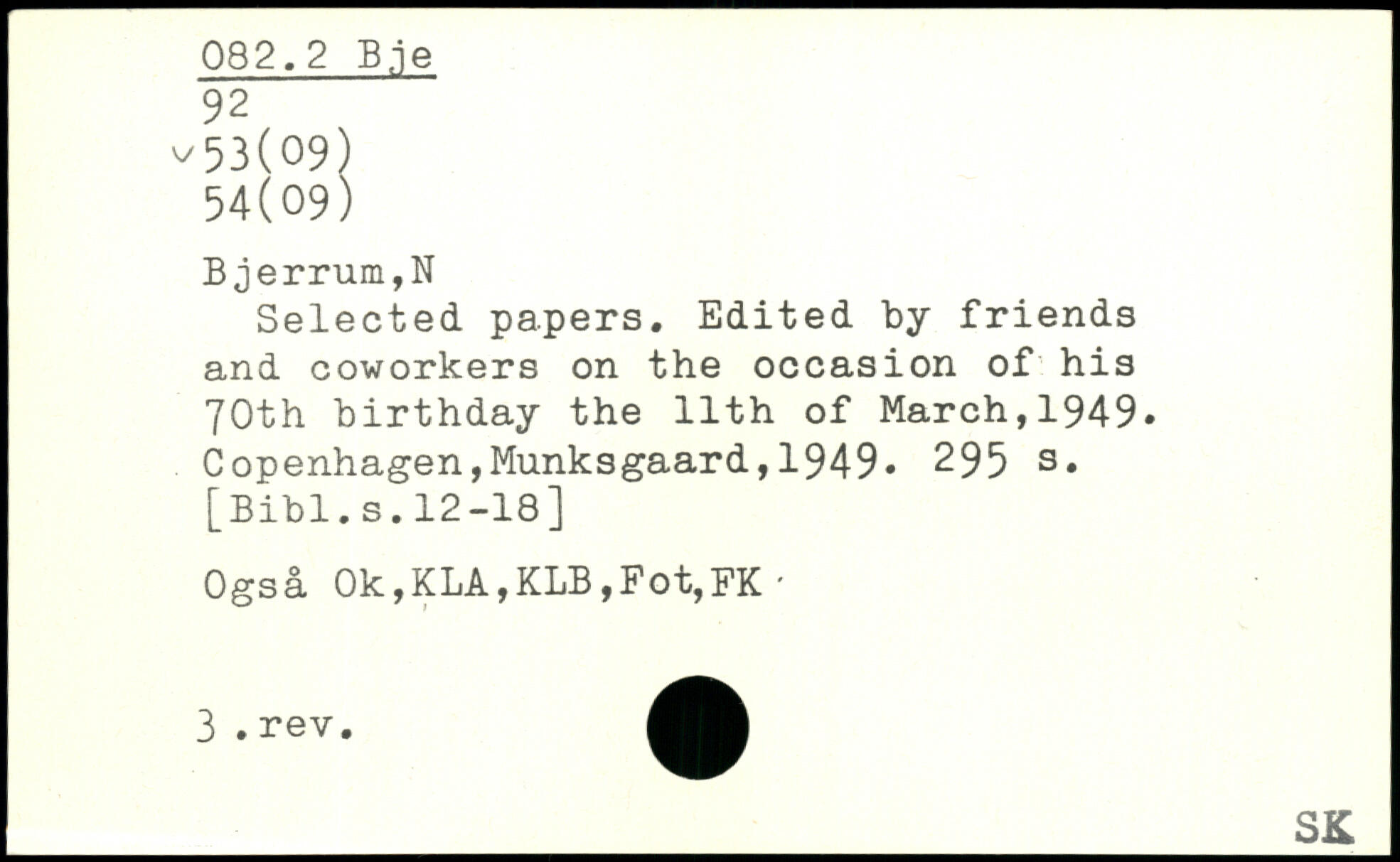 Selected papers. Edited by friends and coworkers on the occasion of his 70th birthday the 11th of March,1949.