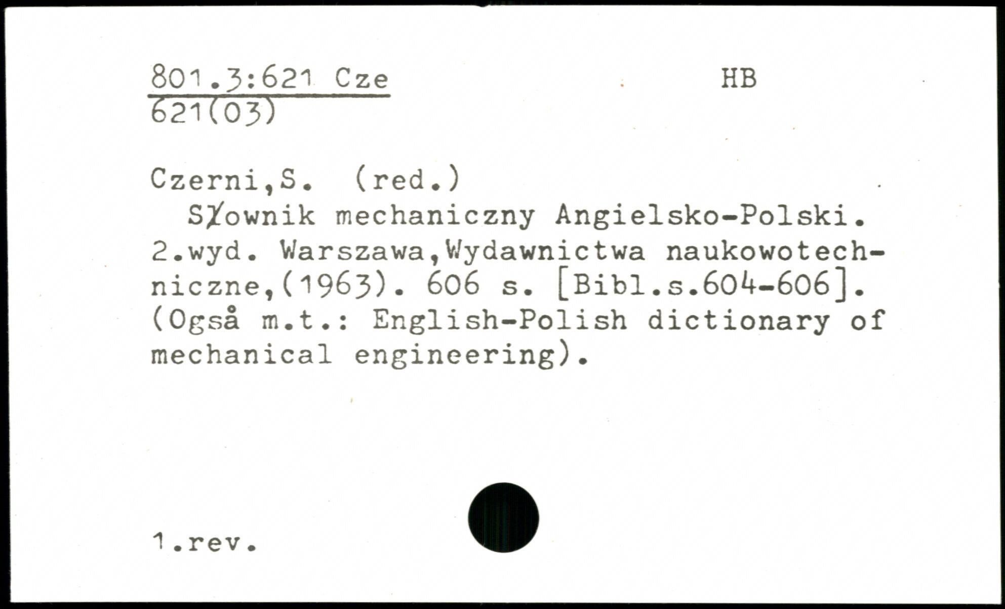 S^ownik mechaniczny Angielsko-Polski. 2.wyd. Warszawa,Wydawnictwa naukowotech-niczne,(1963).