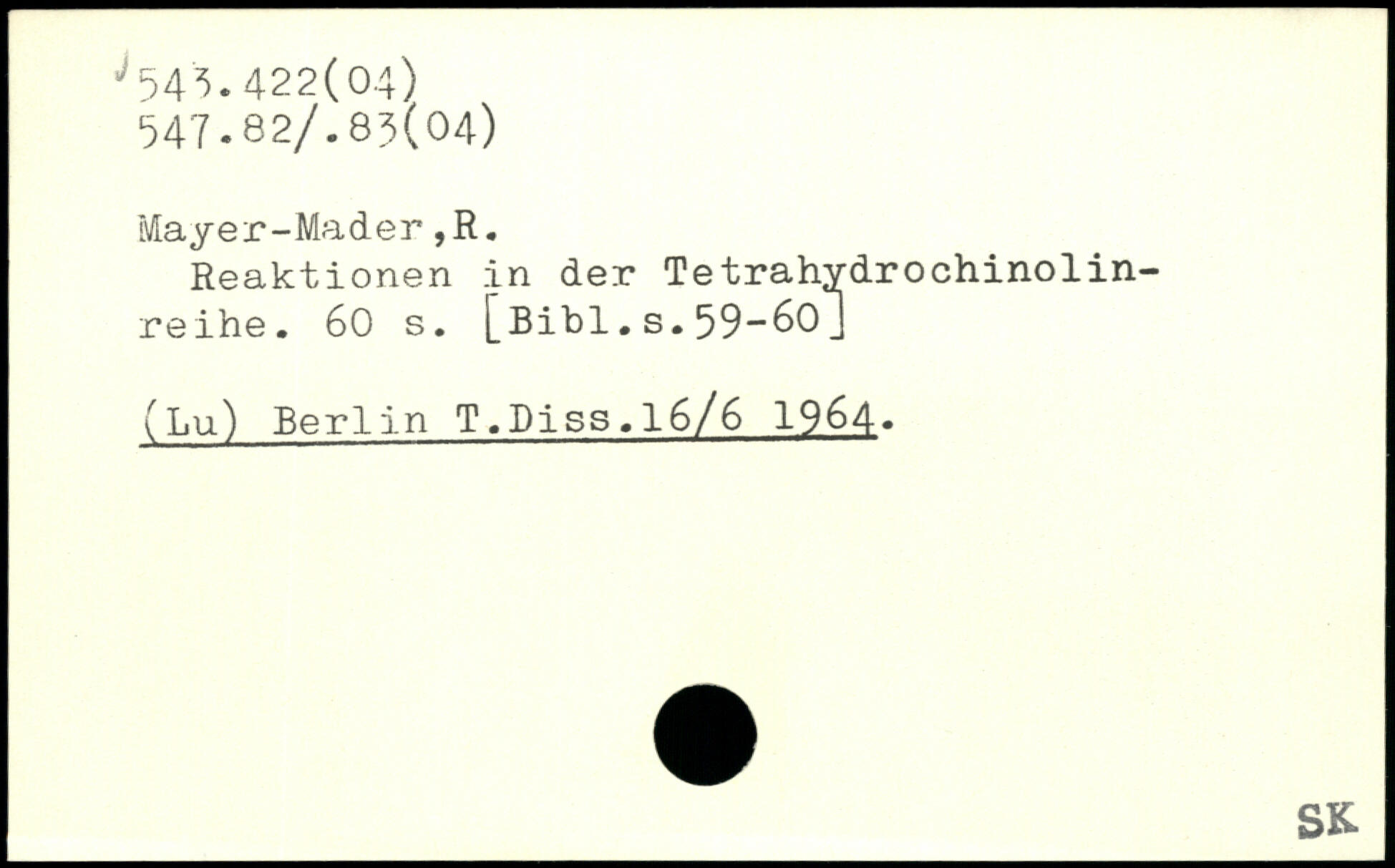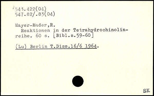 Reaktionen in der Tetrahydrochinolin-reihe.